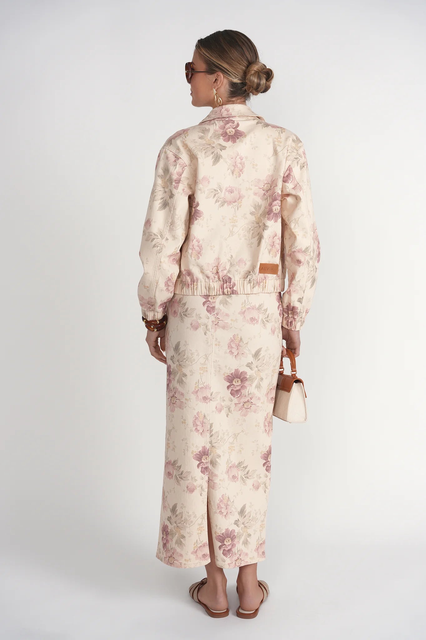 STRAIGHT MAXI SKIRT ~ VINTAGE FLORAL DENIM