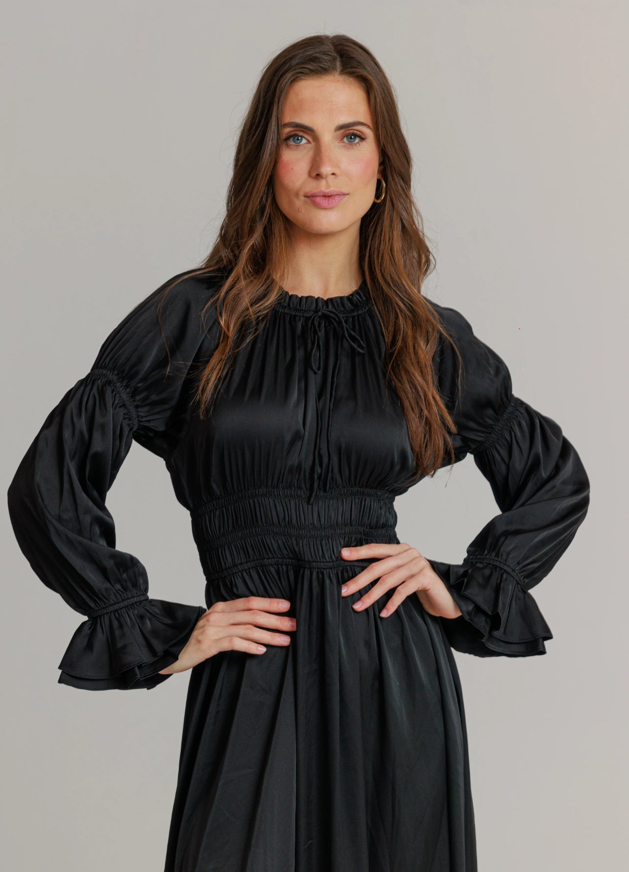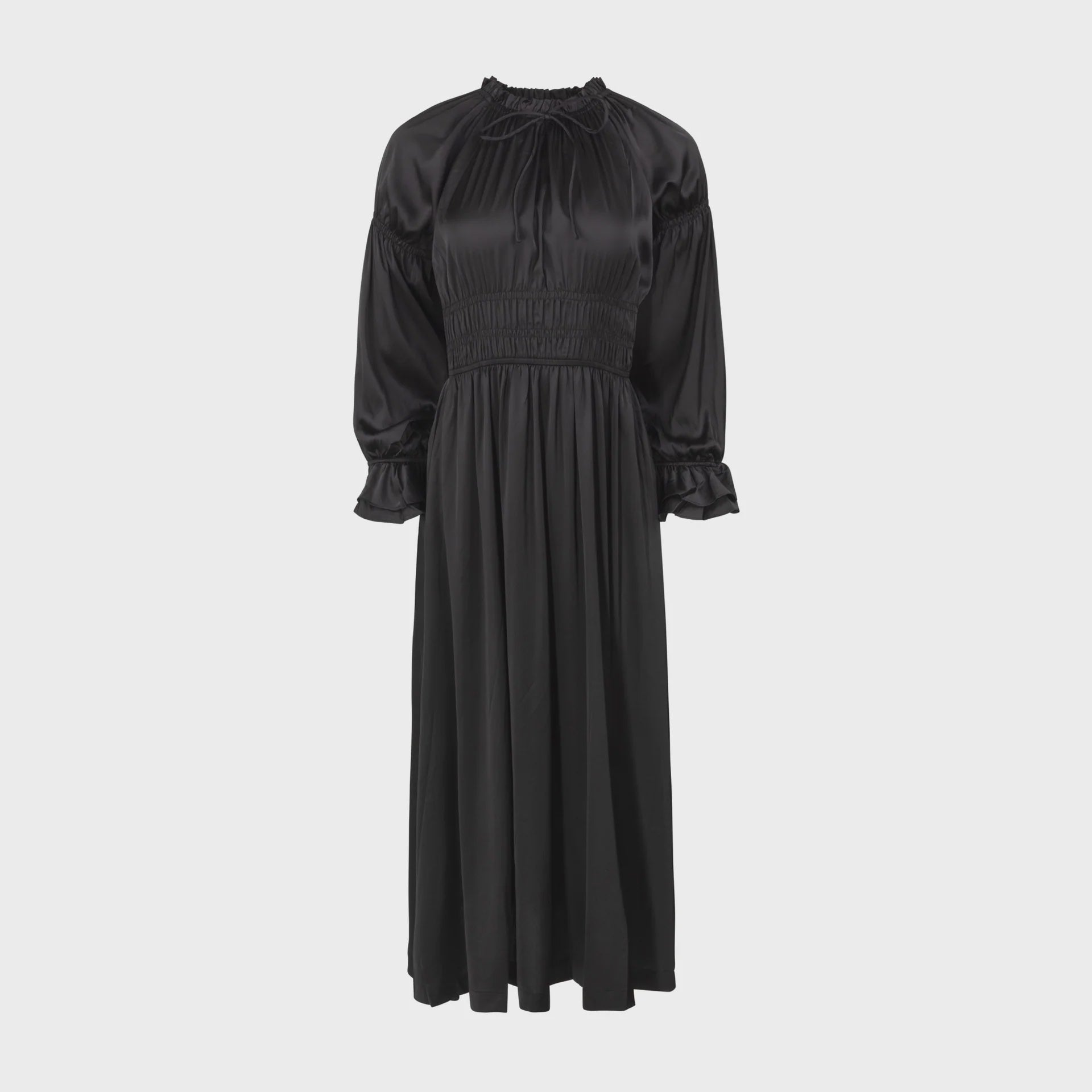 BLACK SATIN SMOCK DRESS