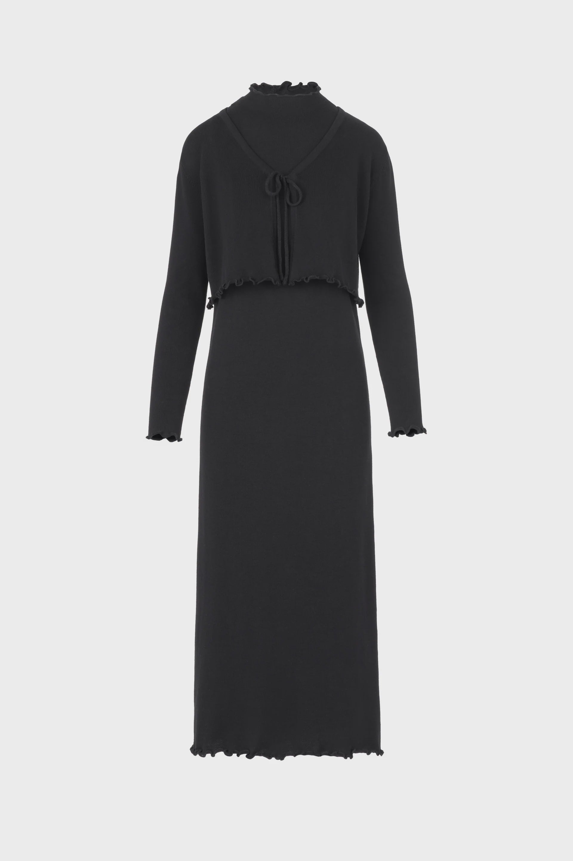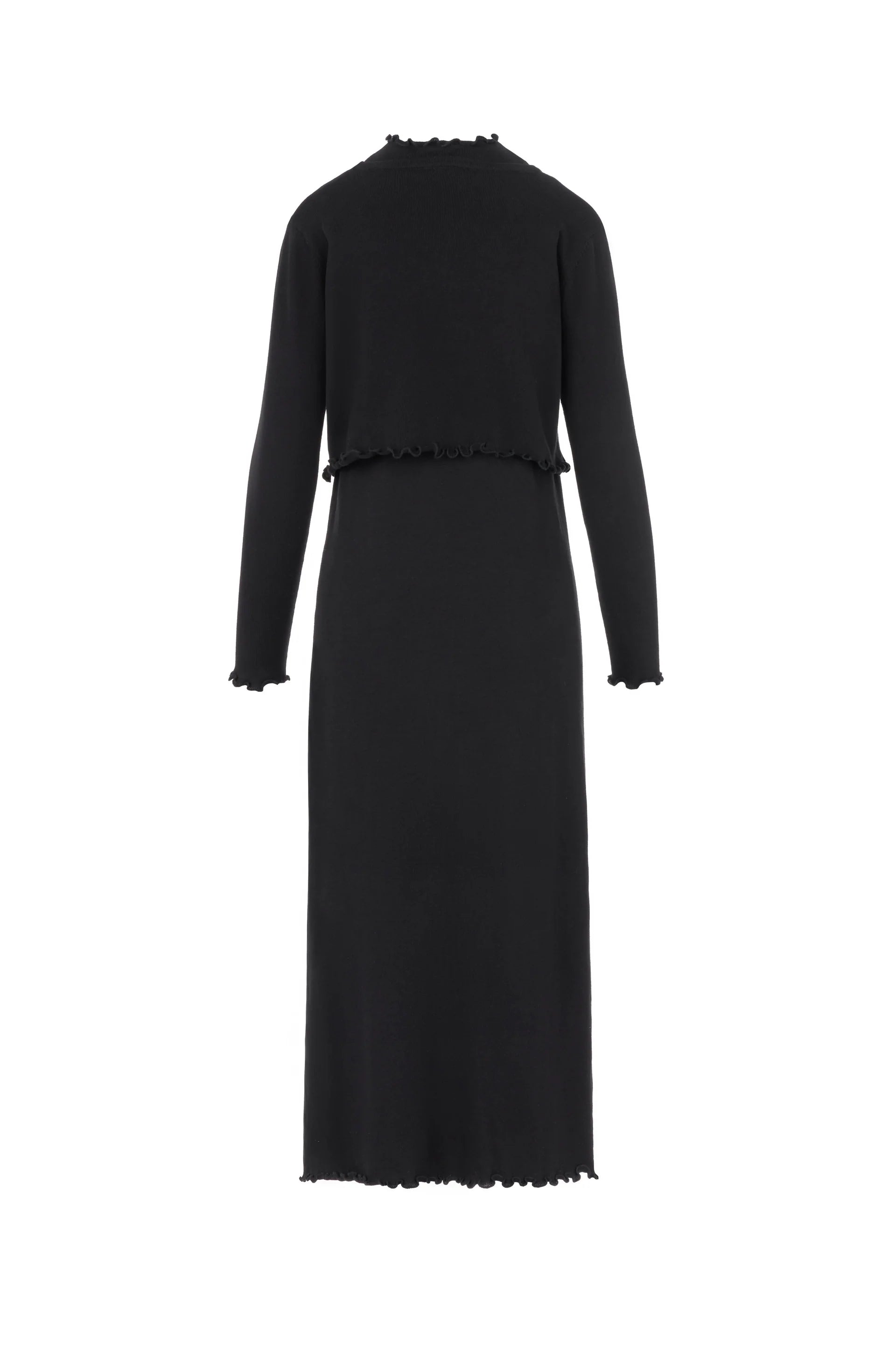 BLACK KNIT CARDIGAN WITH MATCHING SLEEVELESS DRESS