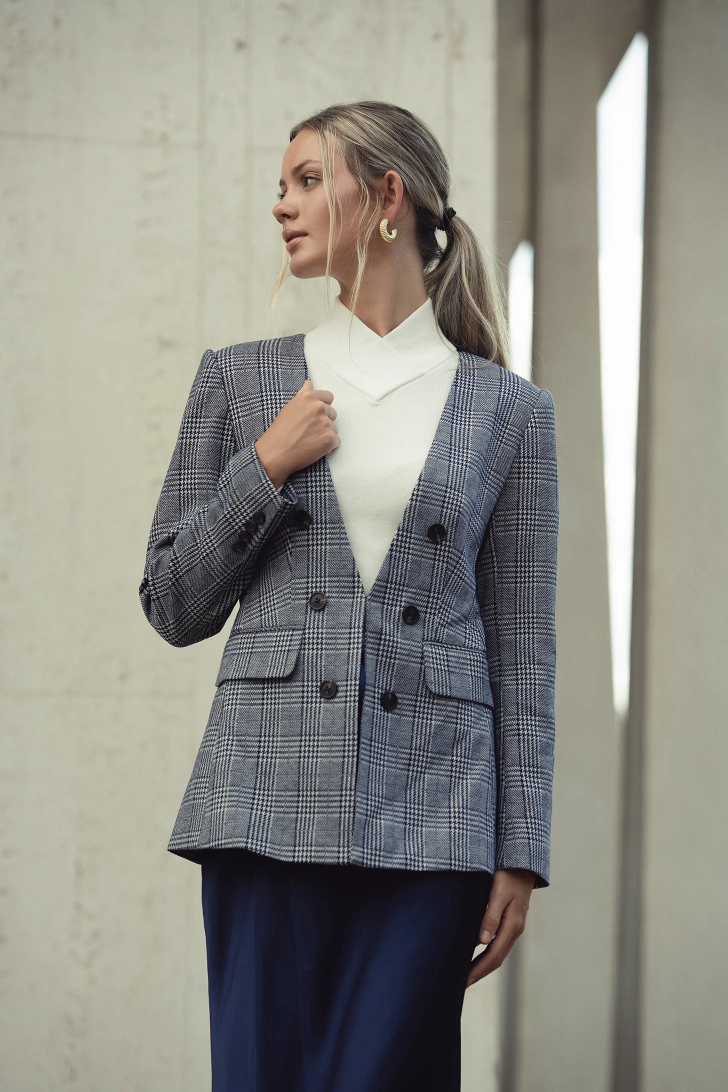 NAVY PLAID BLAZER