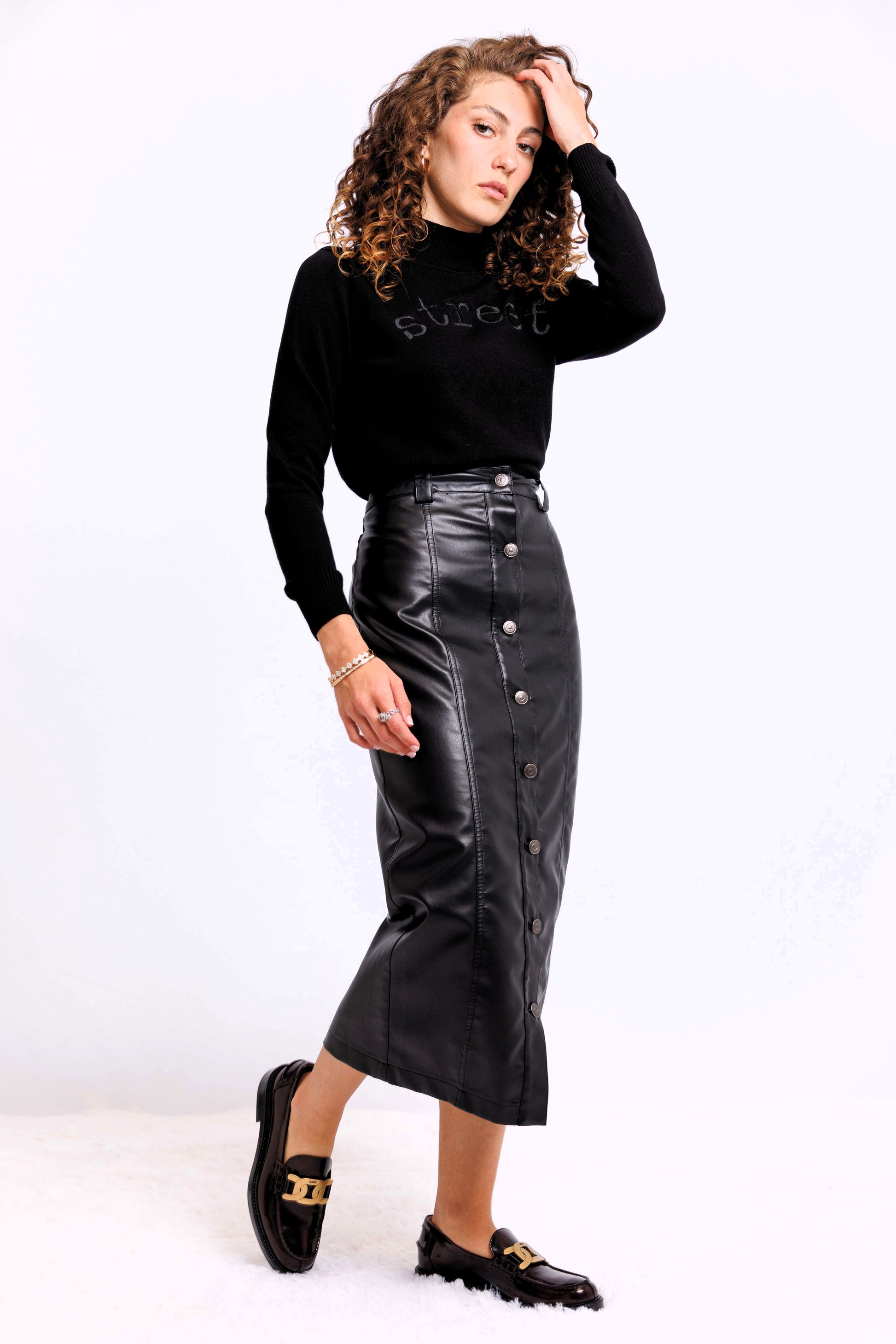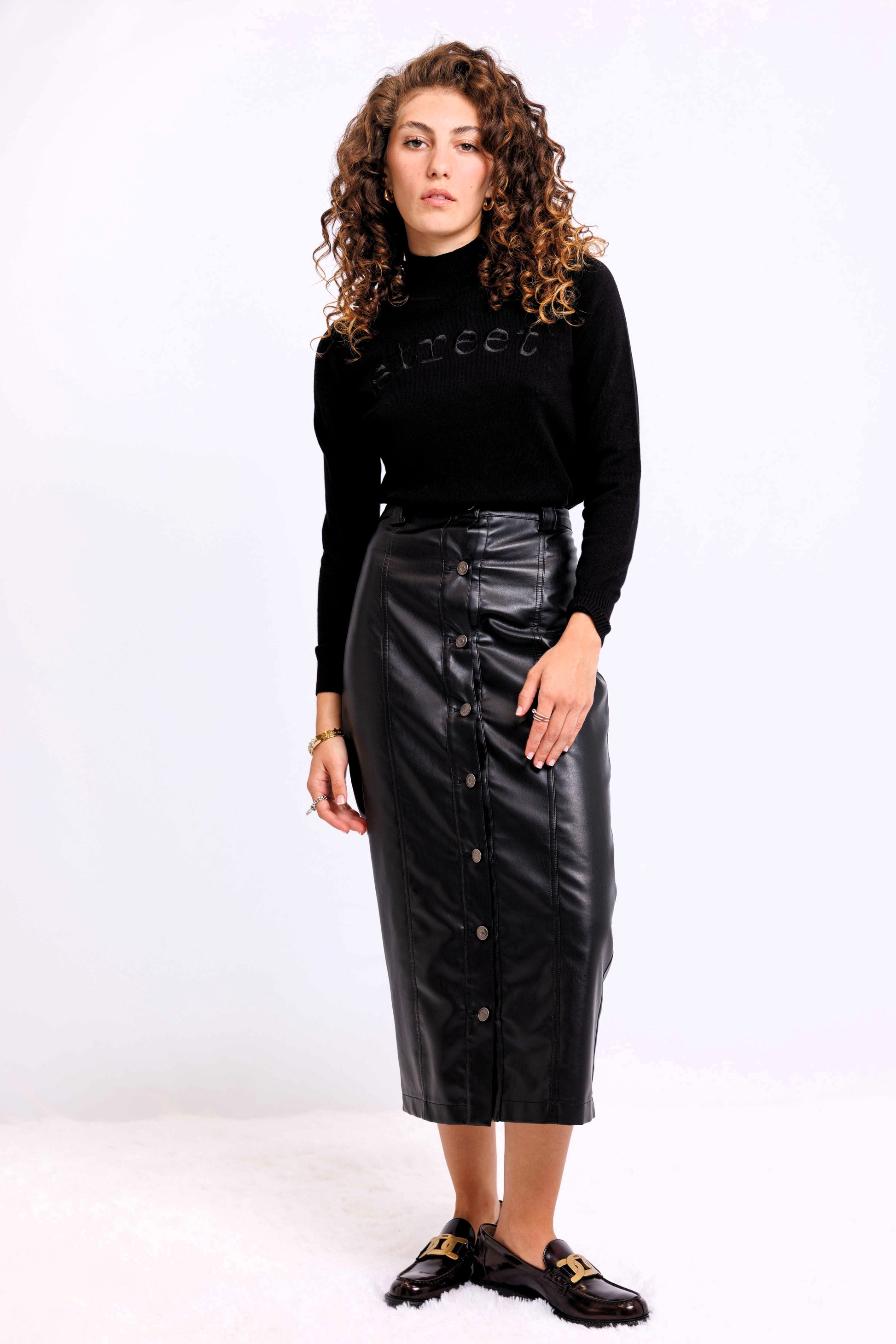 BLACK KNIT SWEATER TOP AVAILABLE WITH BLACK EMBROIDERED LOGO, OR WITH WHITE EMBROIDERED LOGO