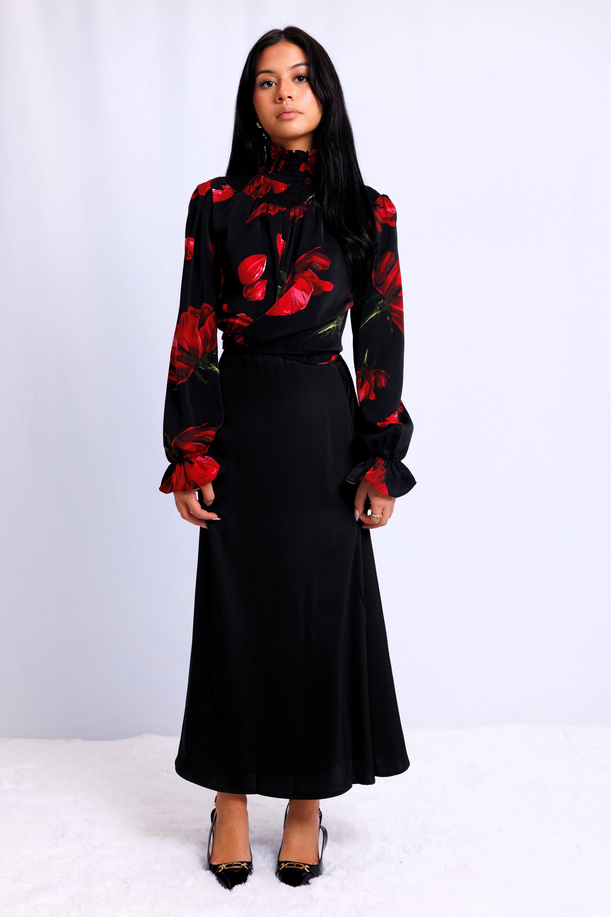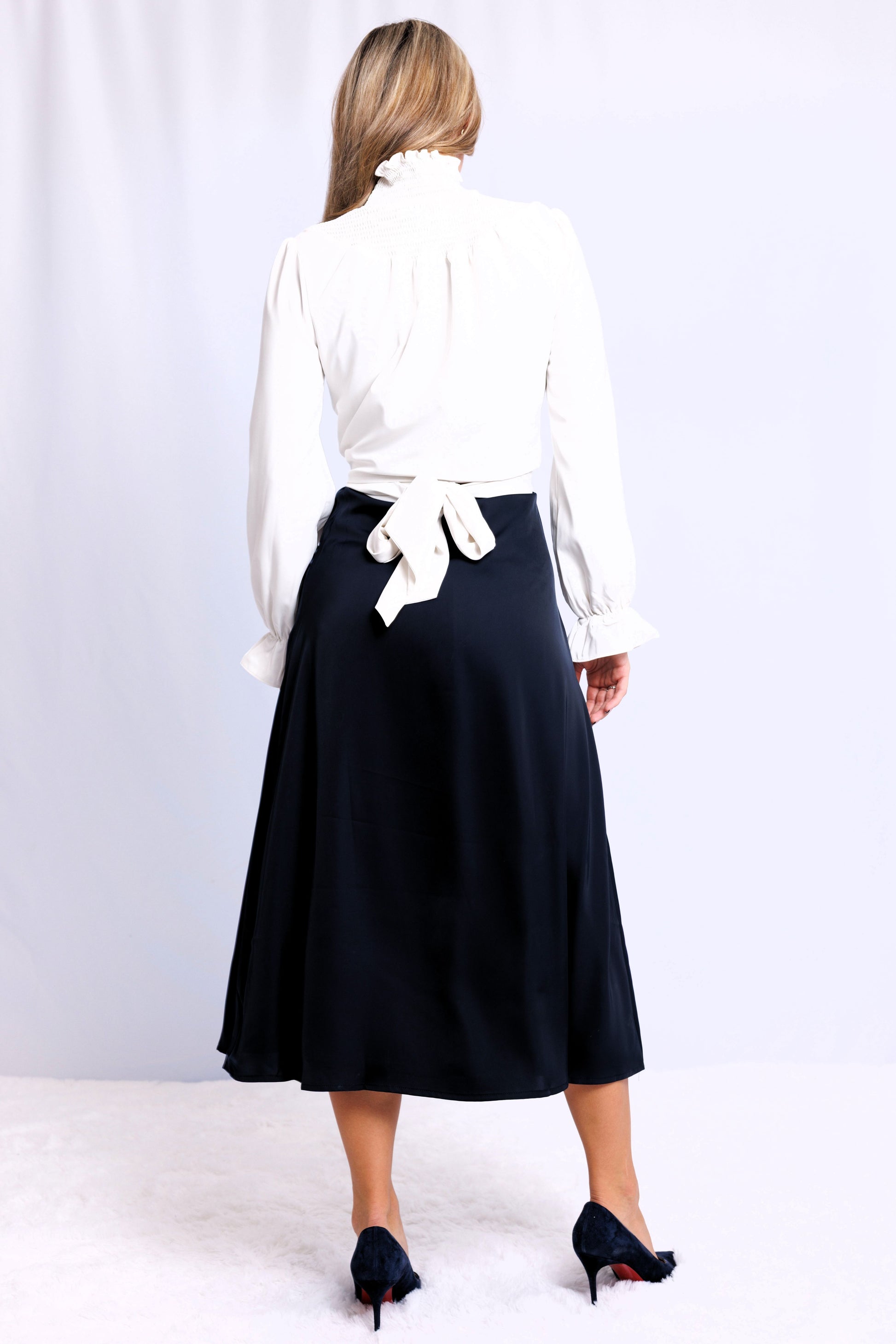 WRAP BLOUSE WITH RUCHED NECK AVAILABLE IN 4 COLORS